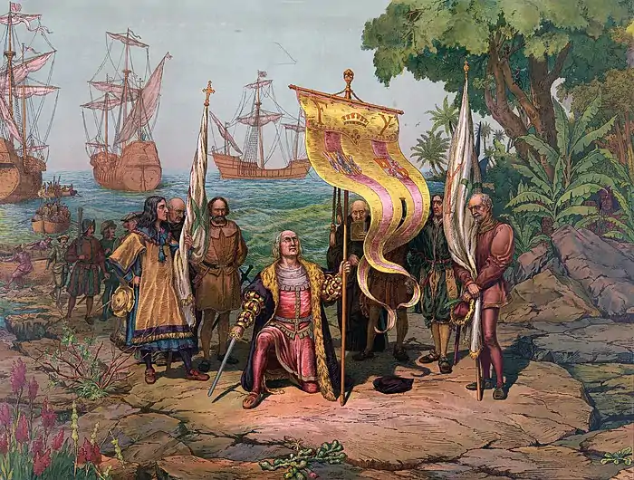 У 1483 році Христофор Колумб вступив в переговори з португальським урядом, сподіваючись на згоду організувати експедицію для відкриття західного морського шляху до Індії. Але його пропозиція не знайшла підтримки: Португалія була близька до відкриття морського шляху навколо Африки. Тоді Колумб переїхав в Іспанію і почав переговори з іспанським двором. 3 серпня 1492, заручившись підтримкою іспанського двору, експедиція Колумба в складі трьох кораблів і 90 чоловік команди відбула з порту Палос на Канарські острови, звідки 10 вересня направилася на захід, але експедиція закінчилась невдачею.[20]