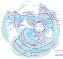 У помірних широтах ці течії під впливом постійних вітрів і сили обертання Землі відхиляються на схід. Таким чином, на північ і на південь від екватора в смугах 50° північної та південної широти виникає два кругообіги. Вони існують в усіх океанах, крім Північного Льодовитого. У Північній півкулі течії рухаються за годинниковою стрілкою, в Південній — проти. - більш локалізовані течії, що породжуються за допомогою вітру або припливів. Вони можуть набути періодичного характеру, чи спричинити великі вихори, як, наприклад, течія Сальстраумен (Малстрим).