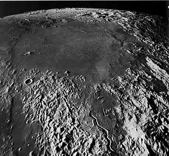![]() Море Парів. Великий світлий об'єкт праворуч - кратер Манілій. Знизу видно тріщина Гигин (тонка світла лінія). Зліва вгорі - гірський ланцюг Апенніни. | |