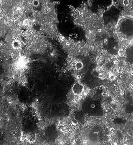 - рештки залитого лавою безіменного кратера (ширина — 5,4 км; перевернуте зображення).