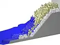 Під час чисельного моделювання фільтраційний рух рідини через порожнини матеріалу дамб оцінюється не за допомогою класичних рівнянь для пористої структури, а інтегруванням рівнянь RANS у рамках вибраної моделі турбулентності.[16]
