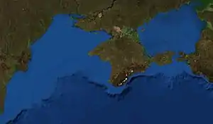 Вертикальний масштаб збільшений щодо горизонтального