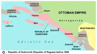 Коли Османська імперія просунулася на Балканський півострів, а Угорщина зазнала поразки в битві при Могачі в 1526 році, Рагуза офіційно потрапила під верховенство султана. Вона зобов'язувалася платити йому щорічну символічну данину, що дозволило місту зберегти свою фактичну незалежність.