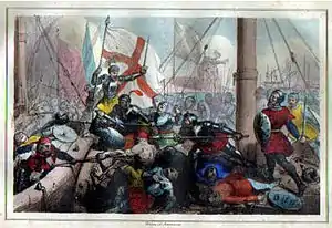 Вже через рік три морські держави вели нерівний конфлікт у водах перед Сен-Жан д'Акре. Майже всі генуезькі галери були потоплені, а близько 1300 військових та моряків загинули. Генуезці відповіли новими союзами. Нікейський престол був узурпований Михайлом VIII Палеологом, який мав на меті відвоювання земель, що колись належали Візантійській імперії. Його експансіоністський проєкт влаштовував генуезців. Нікейський флот і армія захопили і окупували Константинополь, спричинивши крах Константинопольської Латинської імперії менш ніж через шістдесят років після її створення. В результаті свого союзу з Михайлом Палеологом, Генуя замінила Венецію в монопольній торгівлі з причорноморськими територіями.