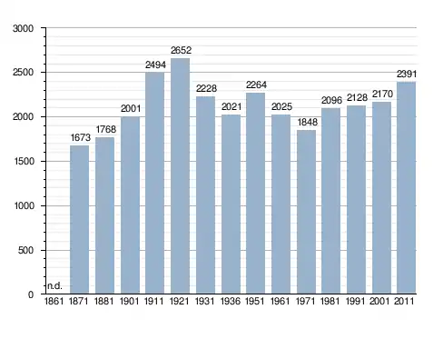 Станом на 31 грудня 2014 року в муніципалітеті офіційно проживало 89 іноземців з 19 країн, серед них 60 громадян країн Євросоюзу та 4 громадяни України.[4]