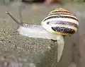 Слимак цепея садова (Cepaea hortensis), смугаста морфа