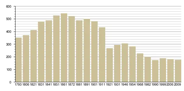 Динаміка населення (base Cassini de l'EHESS pour les nombres retenus jusque 1962[3], base Insee à partir de 1968 (population sans doubles comptes puis population municipale à partir de 2006)[4] · [5] ):