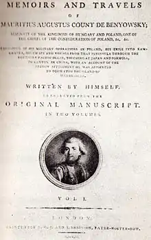 - Benyowsky, Maurice Auguste (1904). Memoirs and Travels of Mauritius Augustus Count de Benyowsky. London: Paul, Trench, Trubner. OCLC 4528029. OL 23318724M.