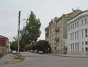 - Буд. № 22 — Триповерховий житловий будинок. На першому поверсі розташована аптека з анотаційною табличкою при вході «Аптека основана в 1905 г.»