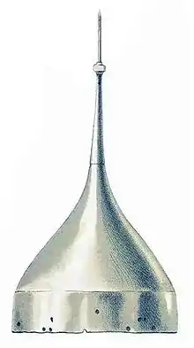 До другої половини XVI сторіччя основним типом шоломів, застосовуваних на Русі, були високі сфероконічні шеломи. Однак застосовувалися й інші шоломи — мисюрки, ковпаки. Різноманіття використовуваних військових наголовень було дуже велике й багато в чому пов'язано з західноазійською традицією озброєння. Відповідно до тегили була бавовняна шапка. У XIV сторіччі з'явилися шишаки, що відрізнялися напівсферичної формою — пізніше вони, разом з залізними шапками, витіснили шеломи. Шоломи могли доповнюватися елементами захисту. Наприклад, єрихонки забезпечувалися відразу назатильником, наушами, козирком й нанісником, а, якщо належали знатним людям, то багато прикрашалися. У полках іноземного ладу іноді використовували кабасети або «шишаки». Однак озброєння залежало від можливостей конкретної людини, тому, якщо один міг дозволити собі бехтерець поверх панцира й шелом поверх шишака, то інший задовільнявся куяком й залізною шапкою[10][2].