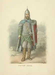 - Древне-русское вооружение // Военная энциклопедия : [в 18 т.] : [рос.] / под ред. В. Ф. Новицкого [и др.]. — СПб. ; [М.] : Тип. т-ва И. В. Сытина, 1911—1915. (рос.)