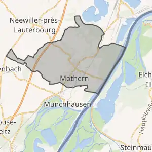 Муніципалітет розташований на відстані[2] близько 430 км на схід від Парижа, 50 км на північний схід від Страсбура.
