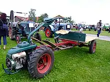 Широко розповсюдженим змінним знаряддям для мотоблока є вантажний візок. Слід мати на увазі, що мотоблок, агрегатований з причепом, не дозволяється використовувати на дорогах загального користування. Для використання з візком придатні мотоблоки середнього і важкого класів. Необхідно враховувати, що такий агрегат неефективний, тому що тягові колеса мотоблока практично не навантажуються, у той час як ведомі колеса візка сприймають основну вагу. Отже, тягового зусилля мотоблока може не вистачити для подолання підйому або для руху по важкій ґрунтовій дорозі. З цієї причини мотоблок з візком придатний лише для переміщення вантажів на невеликі відстані по твердому ґрунту (внутрішньозаводські перевезення, перевезення на присадибних ділянках). Експлуатація з візком істотно скорочує моторесурс культиватора (?).