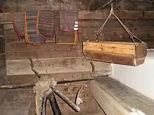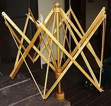 Схожу конструкцію мають так звані «звія́шки» — прилад, вживаний колись у ткацькому виробництві для намотування ниток на шпулю човника. Вони складалися з квадратної підставки («підні́жя»), на протилежних кінцях якої вдовбані два стовпчики («стояки́»), на них зверху лежить вісь («вало́к»), на якій у просторі між стояками обертаються два коліщатка, зроблені з трьох дощечок («ли́ствиць»), розташованих зірчасто. Кінці листвиць одного коліщатка з'єднані з листвицями другого перемичками («ка́чками»), що кріпляться до кінців листвиць шворками[9]. Таким чином, утворюється ґратчастий барабан на осі (конструкція схожа на згадане вище мотовило з музею Ченстохови). Нитки надівали на звіяшки, а потім намотували на шпулю за допомогою іншого приладу — ремісника.