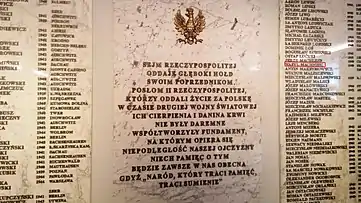 Пам'ять про нього також увічнена на меморіалі в Польському Сеймі. Його ім'я стоїть в одному ряду з десятками інших загиблих депутатів Другої Речі Посполитої.