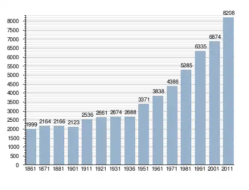 Станом на 31 грудня 2014 року в муніципалітеті офіційно проживали 1092 іноземці з 58 країн, серед них 156 громадян країн Євросоюзу та 34 громадяни України.[4]