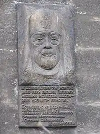 Меморіальна дошка патріархові Мстиславу на вулиці Андріївський узвіз в Києві. Скульптор Володимир Щур