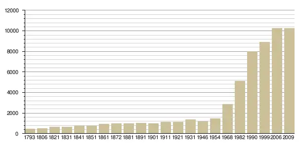 Динаміка населення (Insee[3], Ehess[4] ):