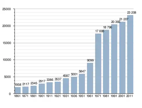 Станом на 31 грудня 2014 року в муніципалітеті офіційно проживало 1614 іноземців з 68 країн, серед них 538 громадян країн Євросоюзу та 139 громадян України.[4]