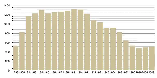 - La démographie de la commune de 1793 à 1962 sur le site officiel Cassini, наведено за французькою вікіпедією
