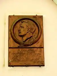 Меморіальна дошка, яку встановлено на фасаді будівлі, свідчить про те, що тут в 1941—1943 роках проживав Герой Радянського Союзу, розвідник Лягін Віктор Олександрович.