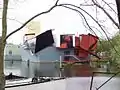 Музей розташований на каналі навпроти залізничної станції. Складається з трьох радикальних модерністичних павільйонів: срібна циліндрична будівля розроблена Філіпом Старком, жовта прямокутна башта розроблена Алессандро Мендіні і блідо-голуба деконструктивістська будівля з червоно-чорними щитами-картинами розроблена Коопом Хіммельбау. Міст, що з'єднує музей із залізничною станцією є велосипедно-пішохідним і з'єднує залізничну станцію з центральною частиною міста. В 1987 директор музею Франс Хакс запропонував Мендіні (колишнього члена дизайнерської італійської групи Мемфіс) розробити нову будівлю і концепцію для музею. Хакс хотів чогось екстраваґантного і наполіг на деконструктивній концептуальній будівлі. Американський митець Франк Стелла мав розробляти один з павільйонів, однак, його план виявився занадто дорогим, оскільки він хотів зробити будівлю повністю з тефлону. Тоді муніципалітет Гронінгену запросив Коопа Хіммелб(л)ау. Будівництво нового музею майже повністю було оплачене Gasunie (нідерландською національною газовою компанією). Компанія святкувала 25-ту річницю і зробила подарунок місту Гронінген. Хакс хотів нову будівлю для музею, оскільки в попередній було недостатньо місця для виставок. Gasunie виділила 25 мільйонів гульденів на цей проект. Алдерман Іпке Ґіетема (нід. Alderman Ypke Gietema), великий прихильник нового музею, був відповідальний за розташування нової будівлі на каналі, не зважаючи на критику. Противники нового музею навіть зупинили будівництво на один рік, протягом якого вони оскаржували його в суді. Протести жителів Гронінгена базувались на тому, що їхні будинки будуть погано продаватись через сусідство з музеєм із суперечливим і ексцентричним дизайном. Не зважаючи на суперечки, будівництво музею продовжилось в 1992 році і було завершене в 1994 році. Громадяни міста звикли до будівлі і музей швидко набув значної популярності.