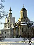 Два вцілілі храми колишнього монастиря - Спаський собор (праворуч після реставрації ) та храм Архангела Михаїла 17 ст. ліворуч