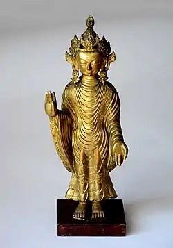 - Китай. Серед найстаріших експонатів — усміхнений Вейтоу, охоронець храму та захмарного буддійського раю (бронза, 16 ст.), виконаний в техніці втраченого воску. Ця техніка досягла значної досконалості в Китаї навіть в давнину і мала чималий вплив на інші галузі мистецтва, серед котрих вироби з каменю, кістки, порцеляни, деревини. Вплив мав також на символіку та засоби декорування та отримав магічне значення. Чисельні зразки китайського мистецтва походять з розкопок поховальних комплексів, бо в багатьох князівствах Китаю сповідували культ мертвих як антипод мінливого та нічим не захищеного життя живих. Серед археологічних експонатів цього напрямку скульптурки тварин та химер (ще язичницькі обереги та охоронці могил). Часто майстри виготовлення подібних речей дотримувались стародавньої стилістики та ігнорували стилі своєї сучасності.