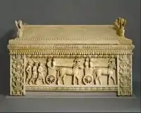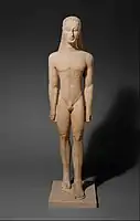 Надгробкова стела з атлетом і малою дівчинкою (верхня частина), 530-і до н. е.