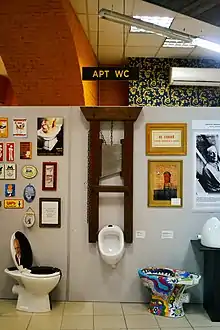 Артмайданчик Музею представлений макетом «Фонтану», пісуару, підписаного Марселем Дюшаном «R.Mutt» і виставленого в галереї як предмет мистецтва. Також тут можна побачити й інші туалети, які мають художню цінність: розмальовані унітази, пісуар-гільйотина тощо.