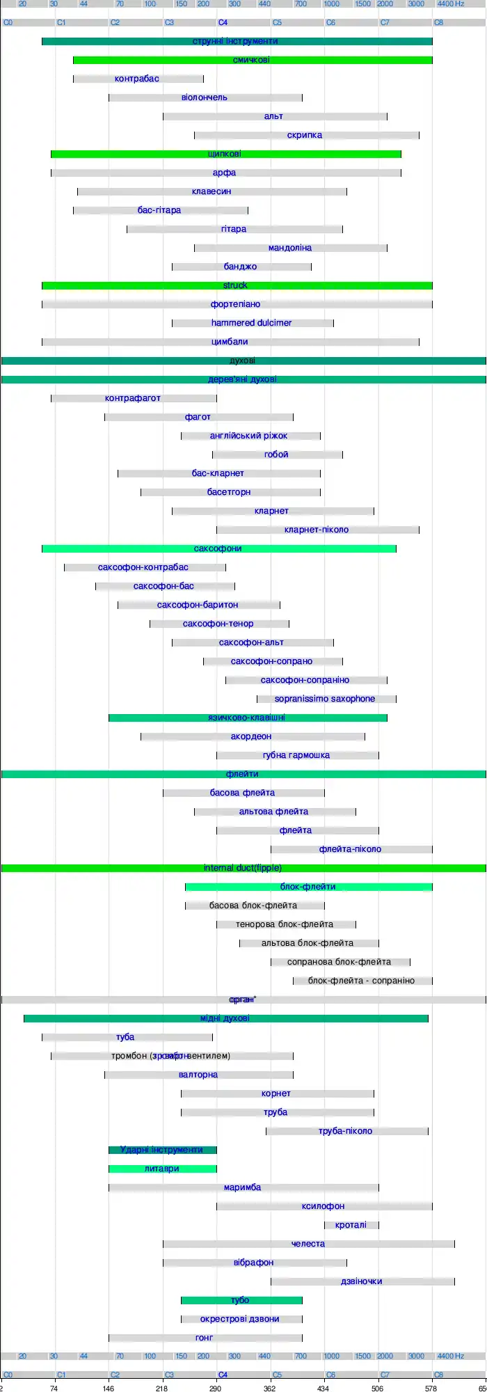 Діапазони музичних інструментів