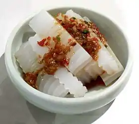 - Нокдумук (녹두묵), виготовлений із крохмалю квасолі