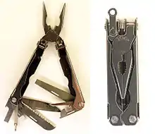 Найбільш поширеним видом універсального складаного інструмента є, окрім звичайних складаних ножів, мультитул у вигляді плоскогубців з довгими губками (довгогубців), спорядженими виїмками для гайок і різальними крайками (як у звичайних пасатижів), і такими додатковими пристосуваннями, як леза ножів (просте і серейторне), пилка, напилок, викрутки, ножиці, шило та інші інструменти, що вбираються в ручки. Окремі моделі можуть мати вирізи в ручках під шестигранні гайки, магнітний патрон для викруткових насадок.