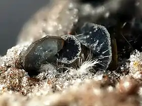 Утворює з силіманітом безперервний ряд твердих розчинів.
