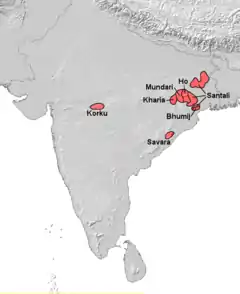 Поширення мов мунда в Індії