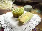 - Найпоулярніша начинка: лотосова паста з ферментованим качиним жовтком посередині. Чим більше жовтків в мункейку, тим він дорожчий
