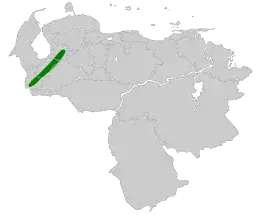 Ендемік Венесуели. Поширений у гірських лісах в Андах на заході країни. Трапляється на висоті від 2300 до 2900 м над рівнем моря.
