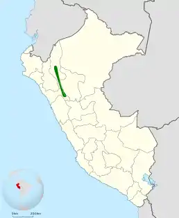Поширений уздовж східного схилу Анд на півночі Перу (Амазонас і Ла-Лібертад). Цей вид вважається рідкісним і місцевим у своєму природному середовищі існування. Трапляється на або поблизу землі гірських лісів та їх узліссів на висоті від 2350 до 2900 м над рівнем моря.