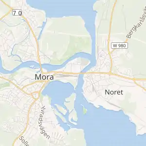 Містечко знаходиться у центральній частині лена Даларна за 316 км на північний захід від Стокгольма.