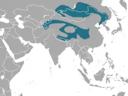 Країни поширення: Бутан, Китай, Індія, Казахстан, Киргизстан, Монголія, Пакистан, Російська Федерація, Таджикистан.