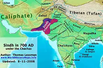 711 року арабський намісник східних провінцій Хаджадж ібн Юсуф відрядив дві невдалі експедиції до Белуджістану (посушливий регіон Іранського нагір'я у південно-західній Азії, нині розділений між Іраном, Афганістаном та Пакистаном) і Сінду.