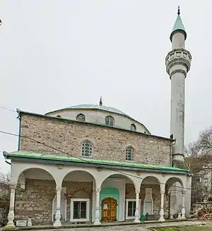 До мечеті прилягає восьмигранний мінарет, складений із тесаного вапняка. Неподалік мечеті збереглися фрагменти старої бруківки та руїни турецьких лазень.