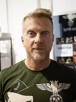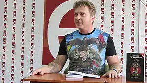 ![]() Антін Мухарський на Книжковому Арсеналі, 2019 рік | |