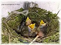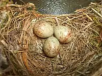 Більшість свіжих кладок з'являється в гніздах у третій декаді травня. Протягом року один виводок. Насиджують обидва з батьків протягом 12-14 діб. Вигодовування пташенят триває 12-13 діб.[4]