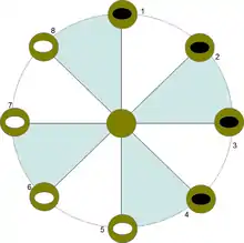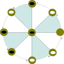 Центральна точка називається пу́тахі (маорі pūtahi), вершини многокутника — кева́ї (маорі kewai).