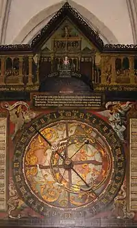 Перший астрономічний годинник, встановлений в соборі в 1408 р., був знищений анабаптистами в 1534 році. Новий годинник створювався в 1540 - 1542 роках. Розрахунок годин виконав математик Дітріх Цвівель та францисканський монах Йоганн фон Аахен. Годинниковий механізм виготовив слюсар Ніколаус Віндемакер, а художнє оформлення виконав Людгер том Ринг Старший[2].