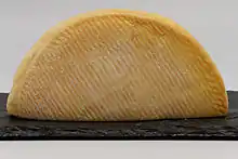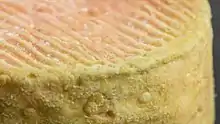 Сир має тонкий червоний помазаний шар на вимитій, гладкій та трохи вологій скоринцім[4][2]. Скоринка жовта, помаранчева або червоно-помаранчева через червону пляму. Характеристики бактеріального шару можуть бути різними[2][5]. Його можна розколоти та частково розрідити в сирних колах під час фермерського виробництва.