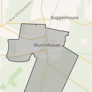- Розташування муніципалітету Мюншуз на мапі Франції та сусідні муніципалітети
