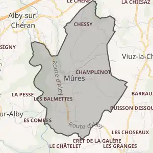 - Розташування муніципалітету Мюр на мапі Франції та сусідні муніципалітети