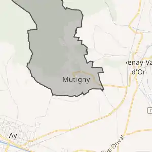 - Розташування муніципалітету Мютіньї на мапі Франції та сусідні муніципалітети